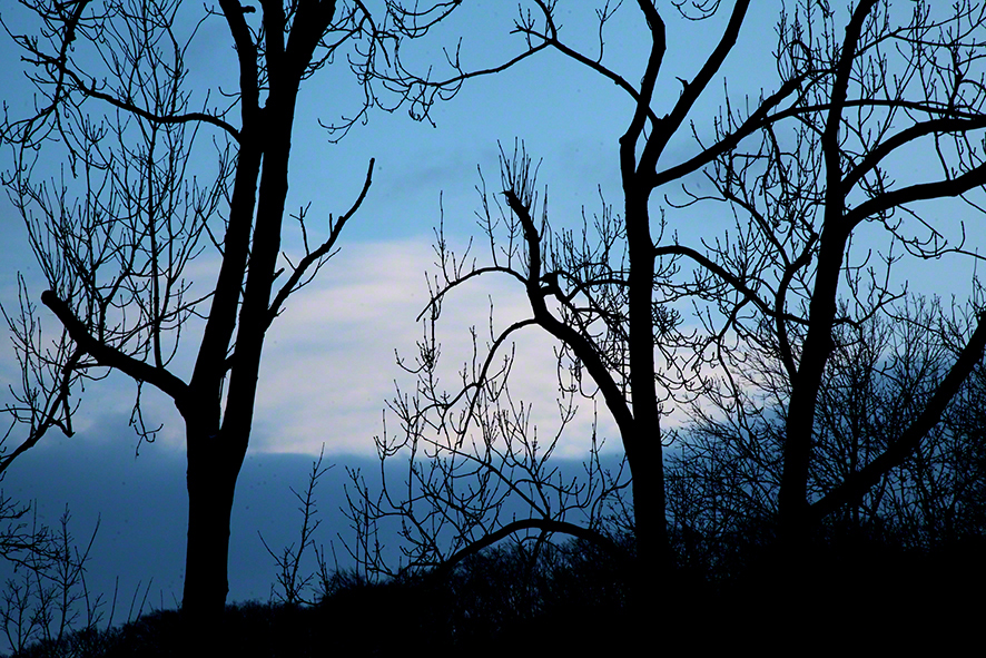 Und auch das Gewölk wird dunkler, das Blau tiefer, das Gezweig der Bäume schwarz.