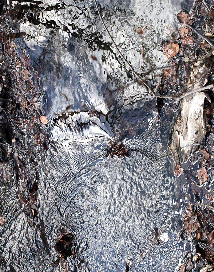 Dem vorigen Baumstumpf nicht unähnlich: immer wieder leicht gestauter Bach,