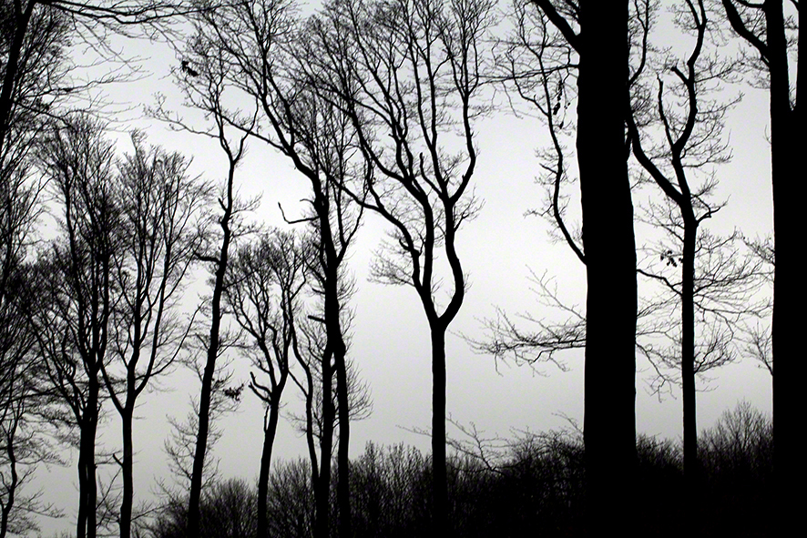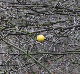 Am Cobenzl gibt es einen bequemen Weg zu einer Aussicht, die von einem schön geschmiedeten Gitter gesichert ist - auf dem Weg davor viele Bänke, die zum Verweilen einladen. Auf einem Apfelbaum hängt noch eine einsame Frucht, alle anderen sind abgefallen, sie schmecken herb nach Herbst. Der Falter am Baum ist wie im Flug erstarrt. Übervoll beladen, fährt der Traktor durch den Wald. Ist dort ein riesiger Seestern gestrandet? Und welches Fabeltier rümpft den Rüssel und zeigt seine Hauer? Zersprungen ist die Rinde des Baumes, und eine Wirbelsäule ist in den Holzrücken eingefurcht. Schwarz steht der Wald vor dem noch hellen Abendhimmel.