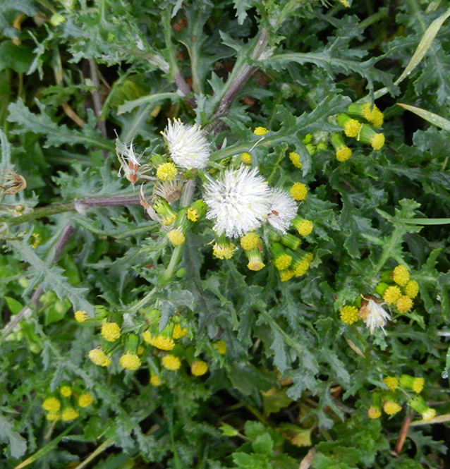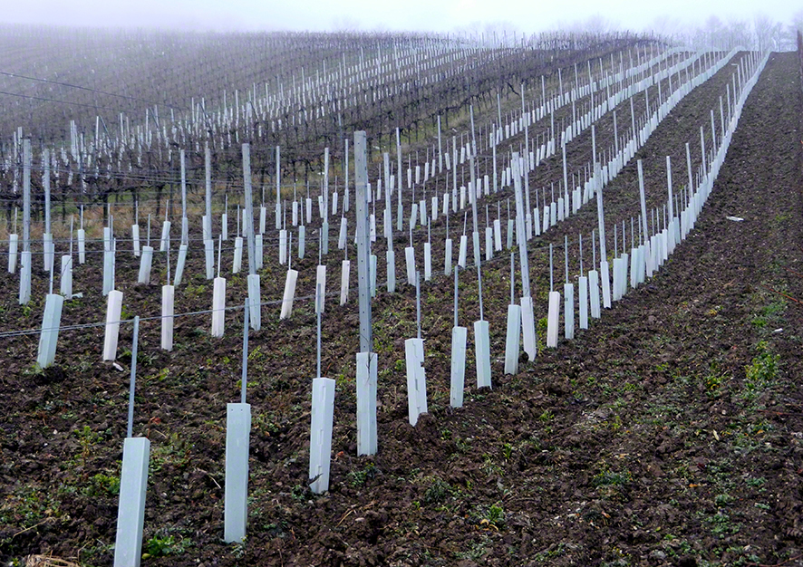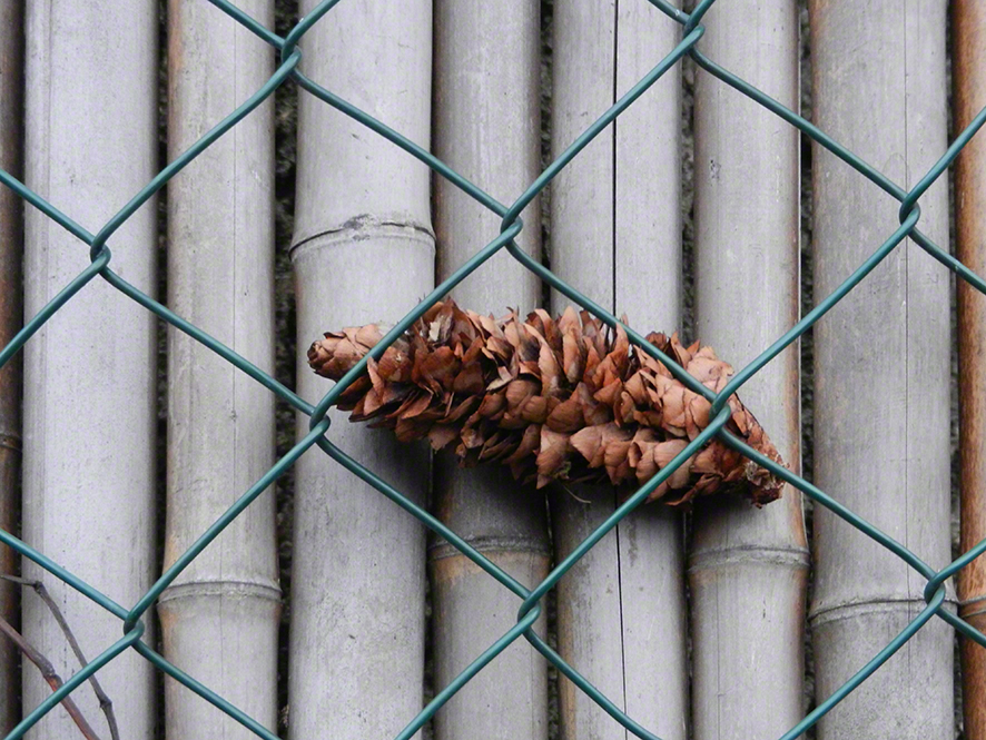 Spaziergang zu den Salmannsdorfer und Neustifter Weingärten am 8. Jänner. Auf die Häuser senkt sich der Nebel, sie versinken langsam hinter einem Dunstschleier. Auf den Stufen häuft sich das Laub, unverdrossen blühen gelbe Disteln in den Weingärten und bilden gleichzeitig weiße Samenbüschel. Ein Zapfen hat sich im Gitter gefangen. In sanften Wellen sind die Weinstock-Reihen schon für das Frühjahr angelegt. Eine Mistel im Baum, ein Vogel hoch auf dem Gesträuch und der stachelige Kardenkopf heben sich schwarz von den zarten Farben des Abendhimmels ab.
