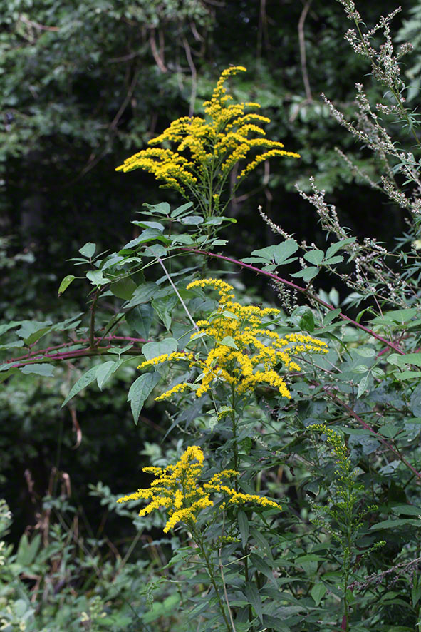 allgegenwärtig das Gelb der Goldrute - Blick vom Höllgrabenweg in die grüne Schlucht gegenüber